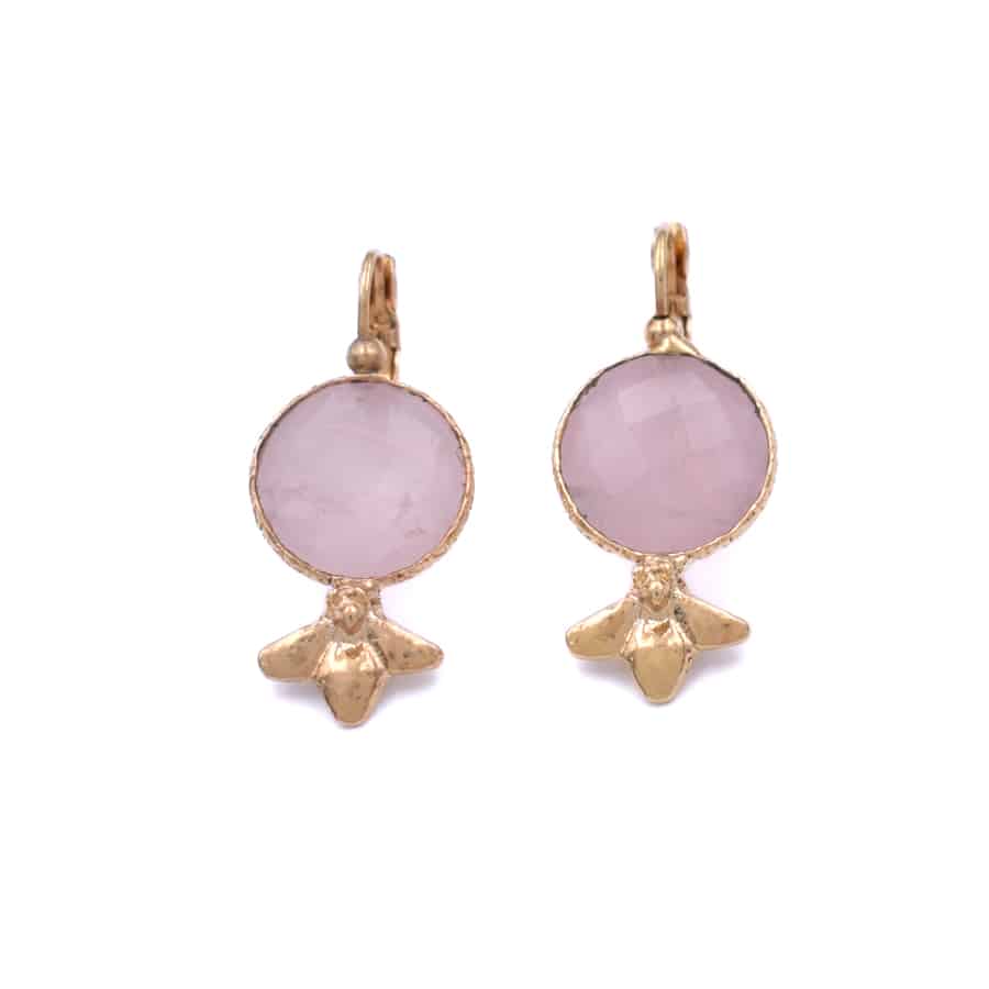 Boucles d’Oreilles pour Femme Serti Dorées de marque Gaz Bijoux. Boucles d’oreilles de fantaisie dorées or fin 24 carats ornées d’un quartz rose. Élégantes et délicates, ces boucles d’oreilles apportent une touche de douceur et de raffinement à votre tenue. Le quartz rose, pierre de l’amour et de la tendresse, diffuse une énergie apaisante. Légères et intemporelles, elles s’adaptent à toutes les occasions, que ce soit pour une journée ensoleillée ou une soirée élégante. Laissez-vous séduire par leur charme subtil et leur symbolisme plein de poésie.